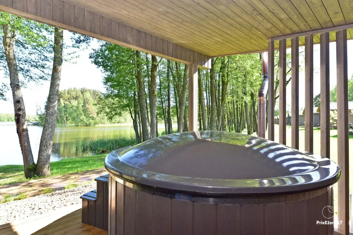 Šiltas vanduo, lengvas garas ir ežero vaizdas padeda nusimesti dienos rūpesčius. Puikiai tinka po aktyvios dienos žaidžiant padelį, beach tenisą ar pasivaikščiojus gamtoje.